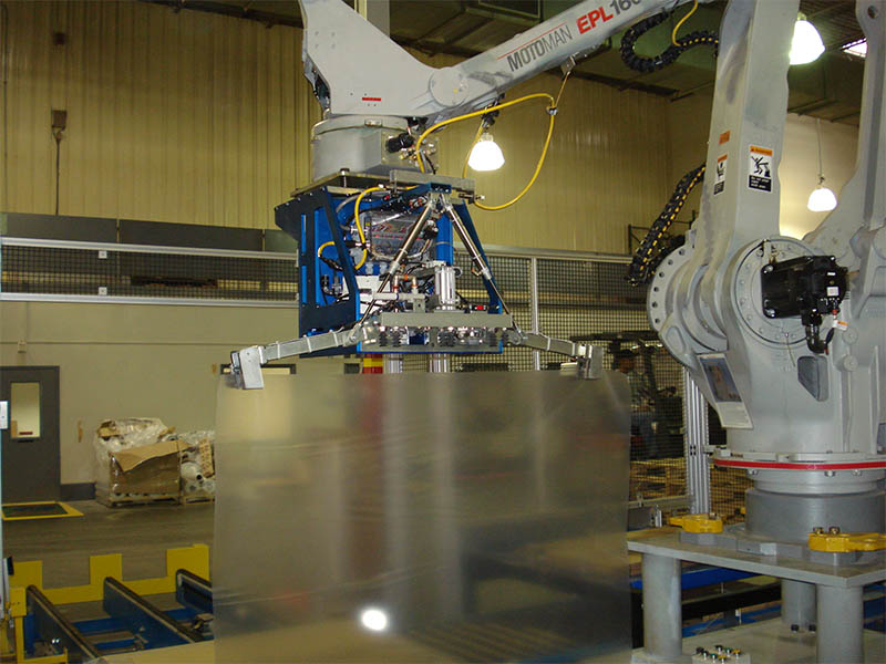 Designed to significantly improve productivity, the ROI Layer Grippers offer a game-changing tool that allows robots or gantry to descend upon palletized products and rapidly de-palletize, one layer at a time. Using a global vacuum in conjunction with pneumatic clamping, this tool is able to handle a wide variety of products with varying stack patterns and then move product to the next desired location. The ROI Layer Grippers allow facilities to: